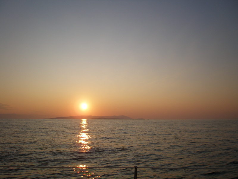 Not much later we see a beautiful sunrise over Hvar. At 06:30 a northerly wind (Bura) rises, rapidly increasing to 8 knots. We hoist the sails, switch off our engine, and keep our course of 355.